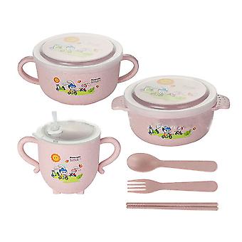 6pcs Cartoon Wheat Straw Bowl Sets Heat Resistant Safe Material Anti Fall Wheat Straw Dinnerware Sets for Home Kindergarten