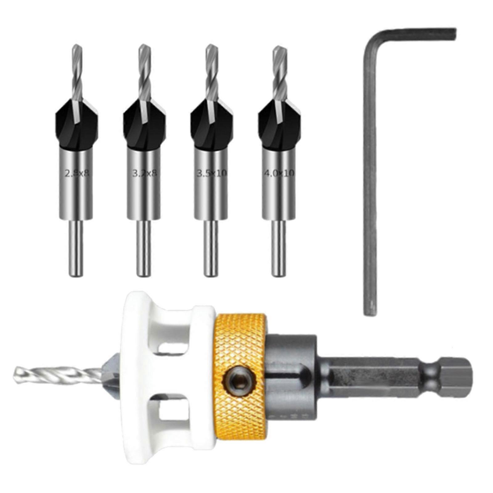 6pcs Countersink Drill Set with Adjustable Depth Stop Woodworking Countersink Drill Bits Set Upgrades for Wood Projects Multicolor