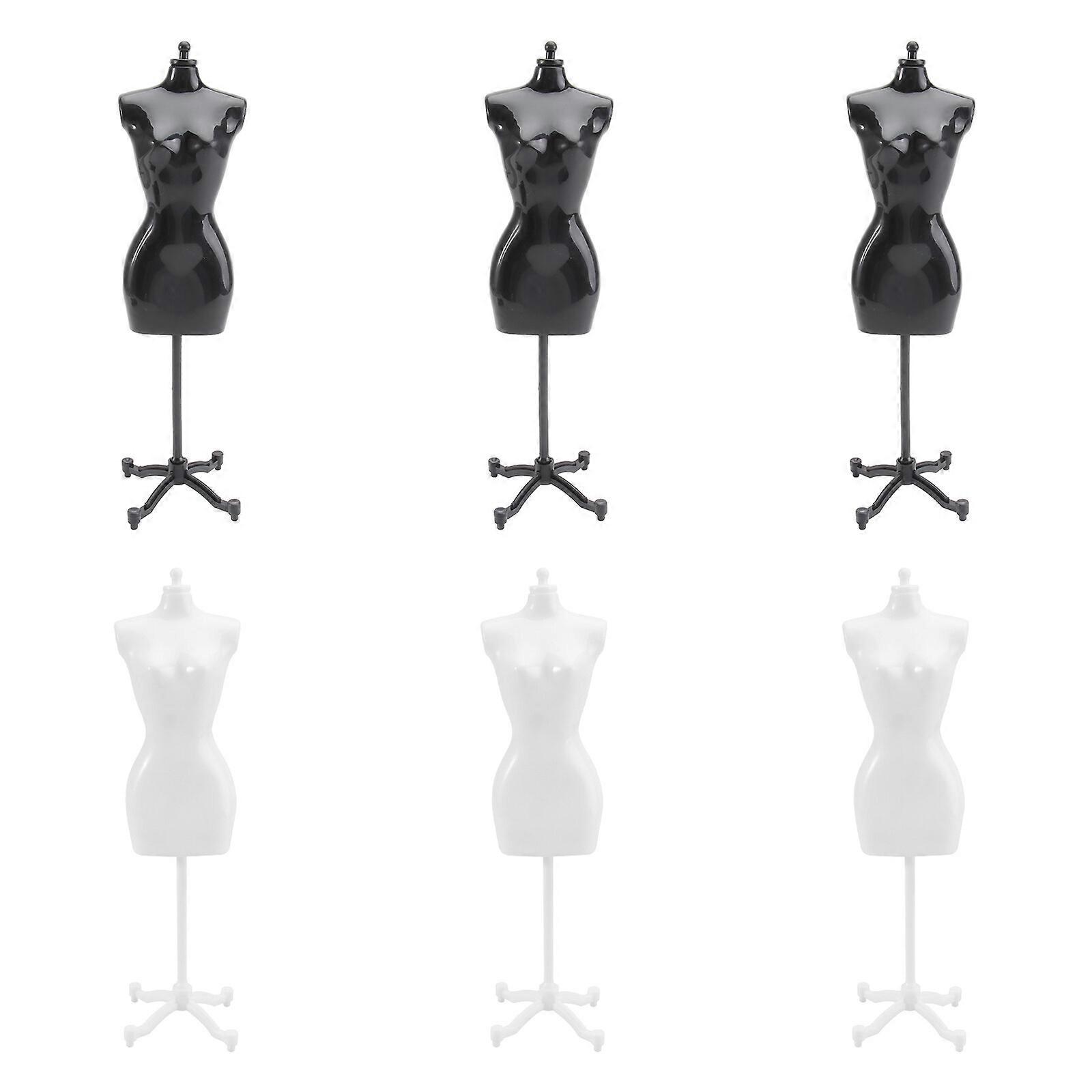 6Pcs Doll Dress Form Cloth Display Rack Small House Accessory (Black, White)