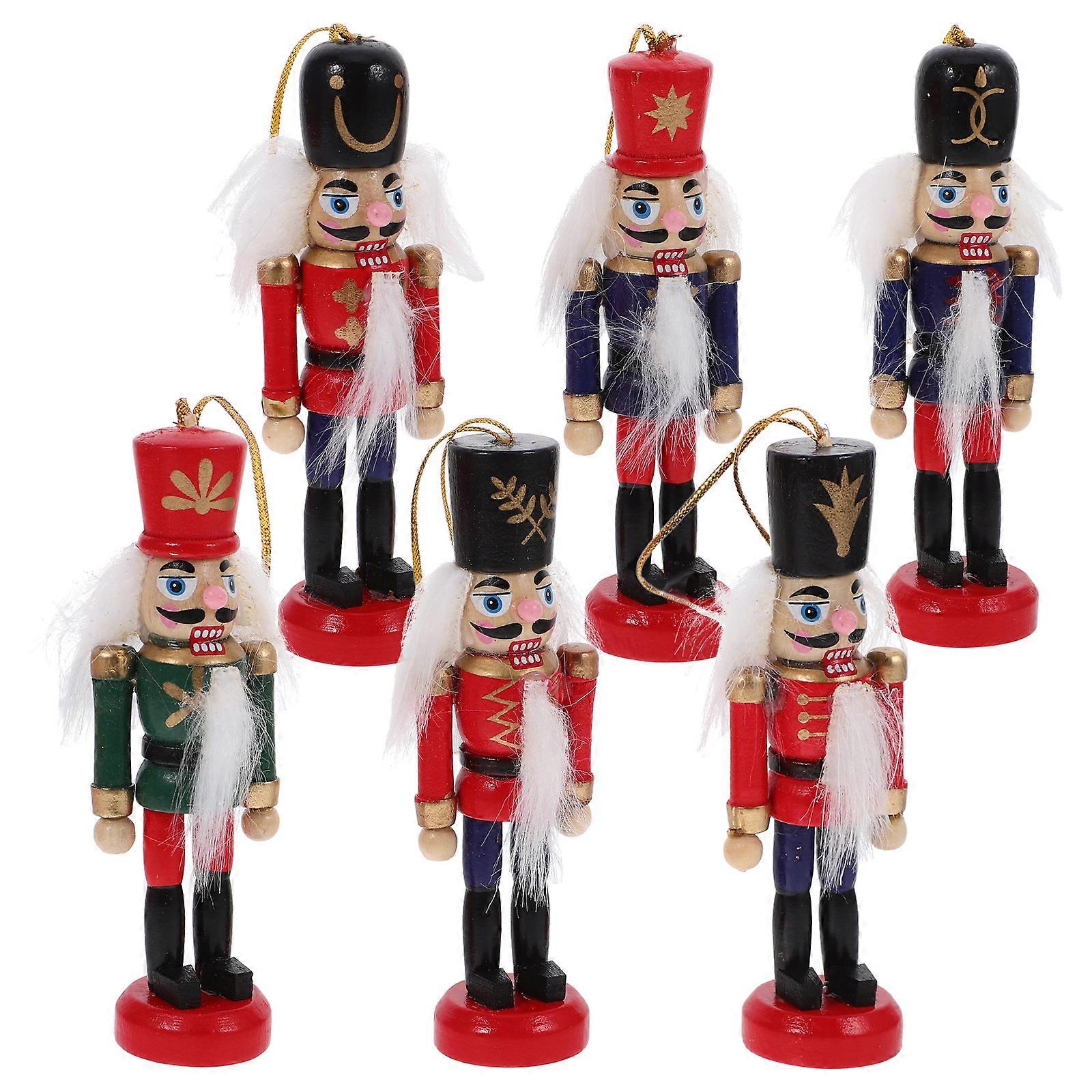 6pcs Christmas Tree Hanging Nutcracker Soldier Small Xmas Wooden Colored Nutcracker Decor Dual Use Desktop Small Soldier Nutcracker