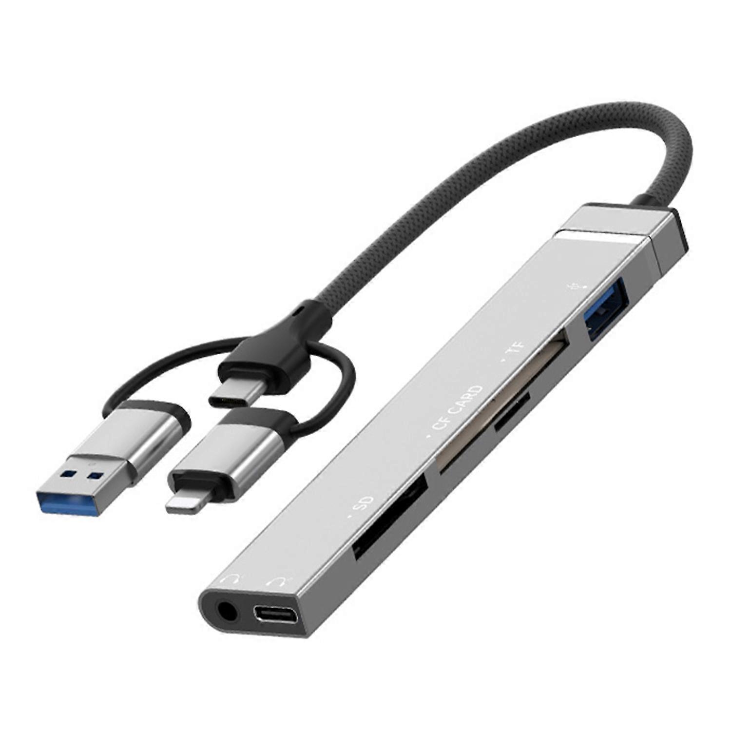 8Pin USB Type-C 3 in 1 Adapter Hub SD TF CF Card Reader USB Data Type-C 3.5mm Headphone Connector