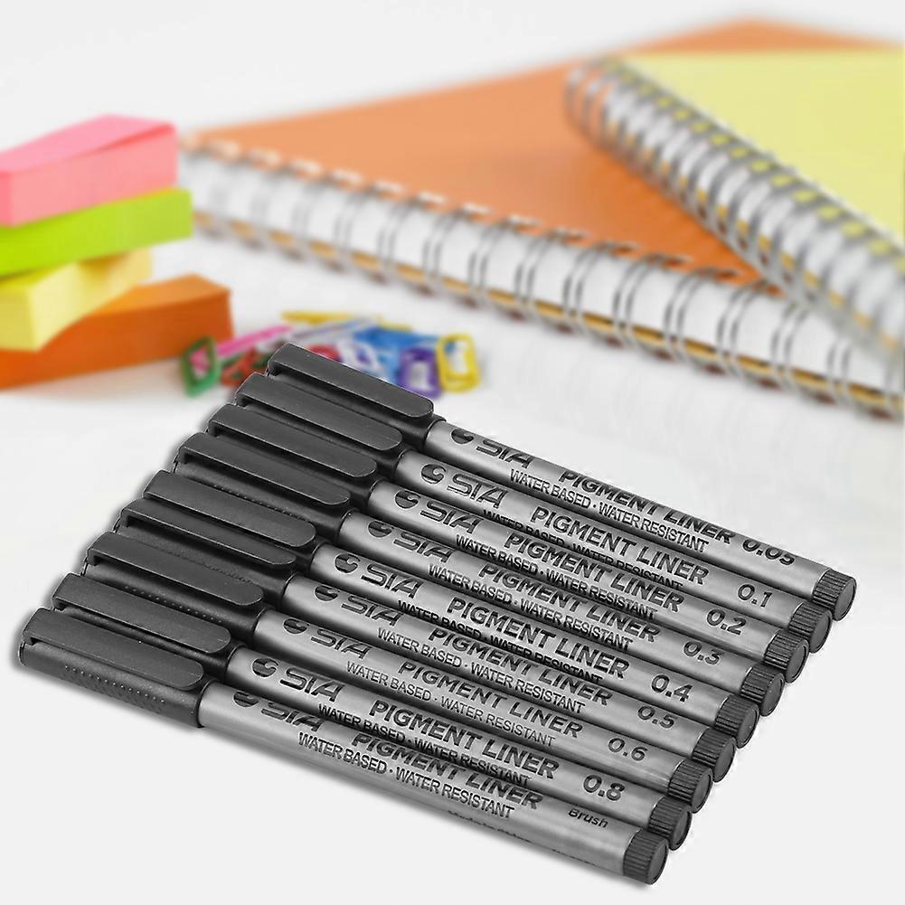 9pcs Water Based Brush Pen Set, Black Ink, Tips 0.05-0.8mm