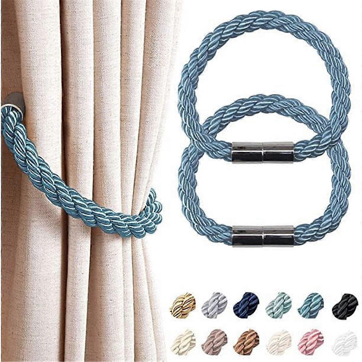 AAOMASSR 2 Pack Magnetic Curtain Tiebacks, Modern Simple Style with Weave Rope, Compatible with Thin or Thick Draperies for Home & Office