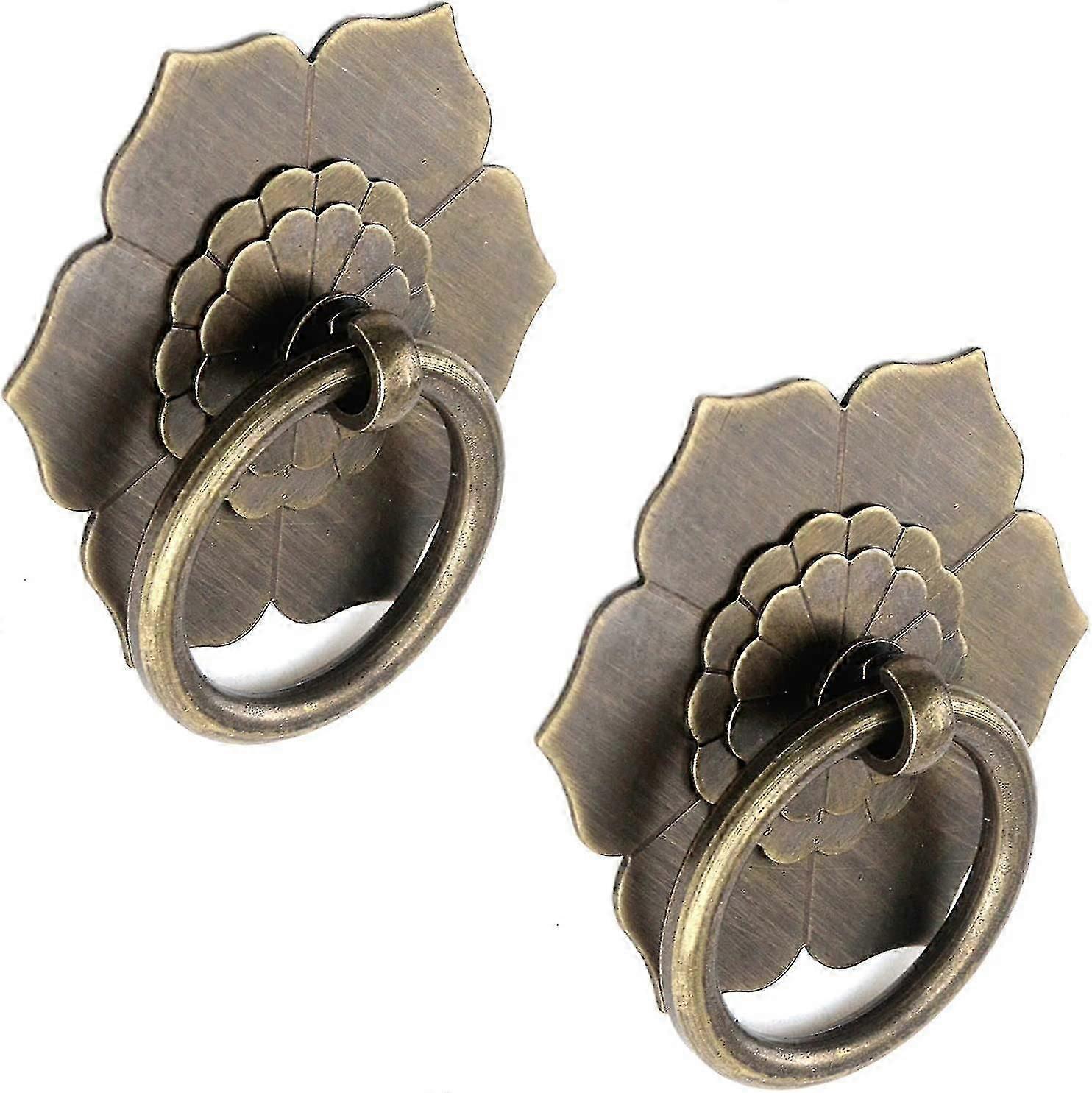 Antique Bronze Flower Drawer Pulls, Drop Ring Cabinet Handles for Dresser Wardrobe Furniture - 2 Pack