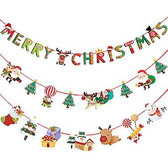 AURA 3Pcs Frohe Weihnachten Bunting Banner, Weihnachten Hängebanner Weihnachten Cartoon Behänge Wandbehang Dekoration für Weihnachten Party Ornamente