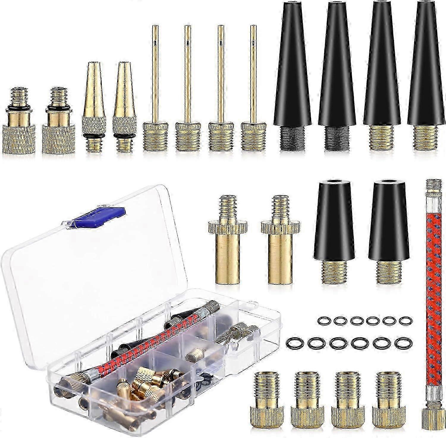 Bicycle Pump Nozzle,33 Pieces Balloon Inflator Nozzle,DV SV AV Bicycle Pump Adapter with Storage Box,Valve Adapter with Inflator H