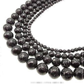 Black Jet Pyrite Inclusion Smooth Round Beads 4/6/8/10mm 15.5" Strand