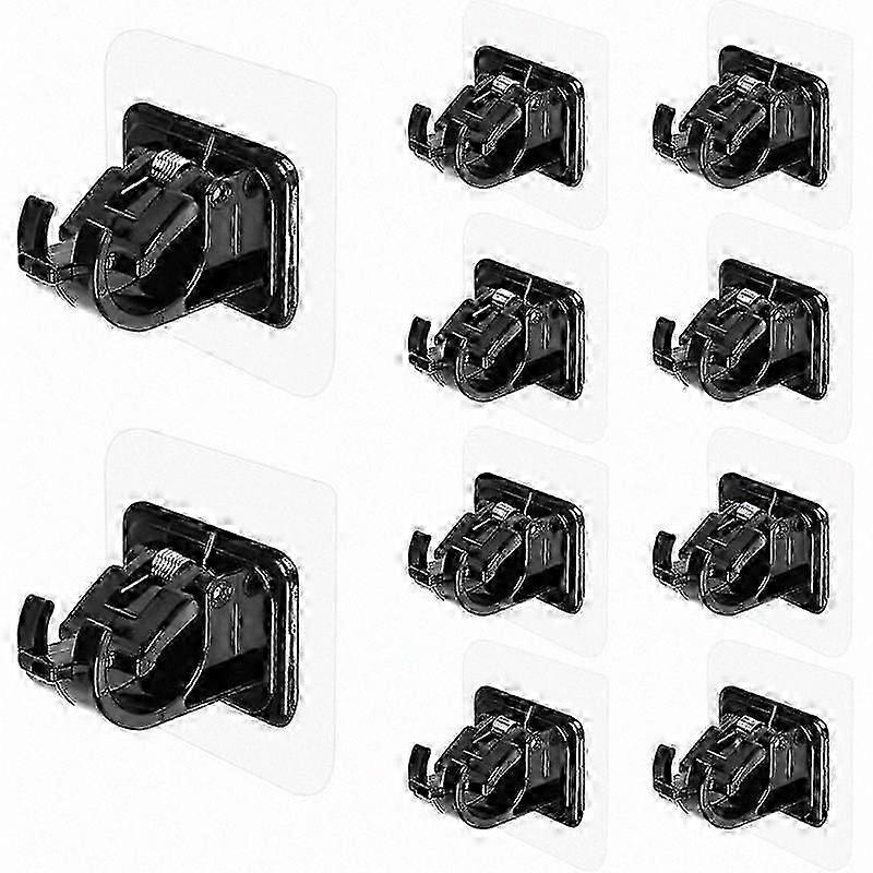 Black Self-Adhesive Curtain Rod Brackets, No Drill Required, Adjustable and Easy to Install (Pack of 10)