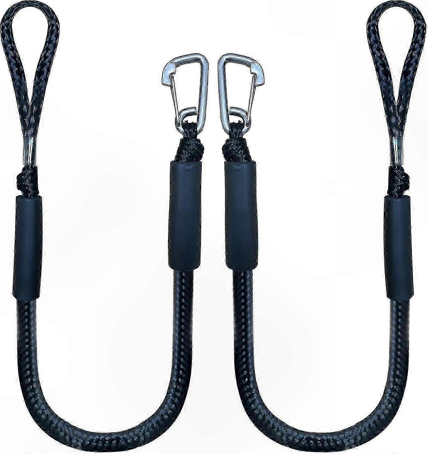 Boat Dock Line with Hook, 4ft Black Mooring Rope, 2-Pack