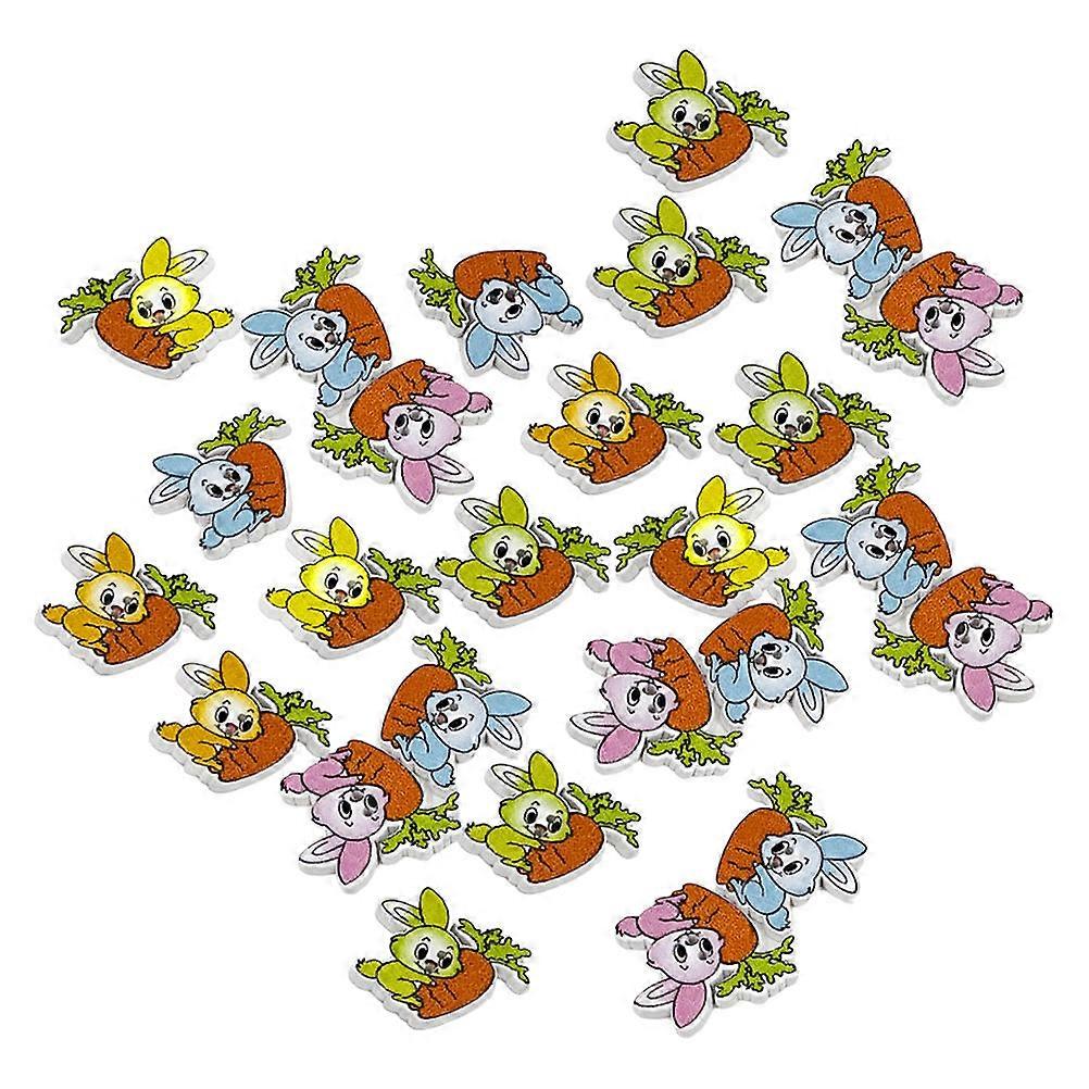 Cartoon Bunny Wooden Buttons for Decoration 250Pcs Easter Assorted Color Buttons