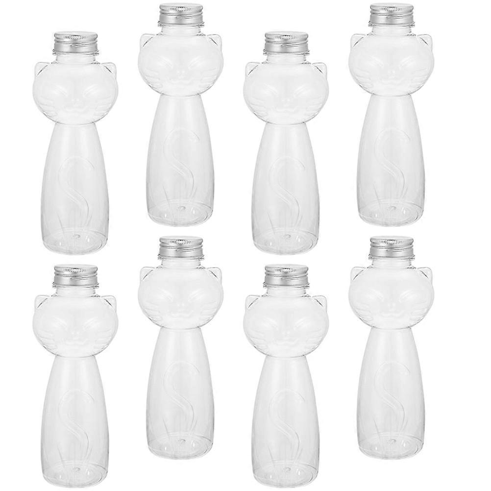 Cat Shape Empty Beverage Bottles for Home Use with Sealed Lid Made of PET Transparent Lightweight Portable 8 Pieces
