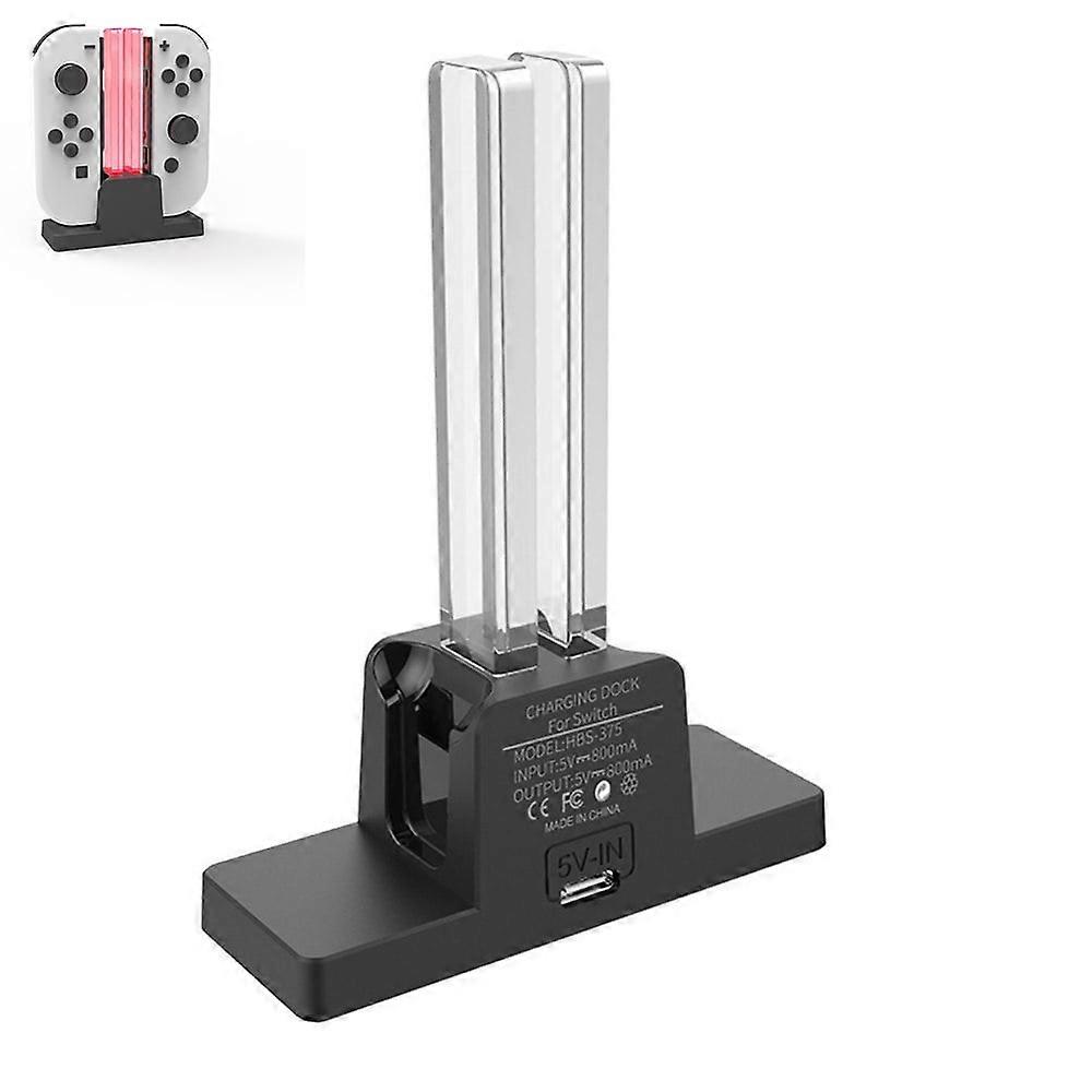 Controller Charger for compatible with Nintendo Switch Charging Dock Station Replacement Charger Stand Easy to Use OLED Model Descriptions: This Charging Dock for compatible with Nintendo Switch is the easiest solution for keeping forJoyCon Controllers charged up and organized. Easy slide-in design & plug and play.Charging Dock will charge up to 2 Controllers simultaneously (Controllers NOT Included). Docking station features a tree-like design for easy on/off docking, while the LED lights indicate when charging is complete. Made of high quality materias, lightweight, portable, solid and durable. The charging dock can be powered directly from your console, as well as any USB power port. Specification: Name: Game Controller Charging Base Application: For switch/switch OLED controller Input: DC 5V / 800a Output: DC 5V/800ma Material: ABS Colour: Black Size: 133*107*34mm Quantity: 1 Package Included: 1 X Charging Dock Notes: -Due to manual measurement, there may be a slight error in the size. -The color deviation may vary due to different monitor settings, please understand. This Charging Dock for compatible with Nintendo Switch is the easiest solution for keeping forJoyCon Controllers charged up and organized. Easy slide-in design & plug and play.Charging Dock will charge up to 2 Controllers simultaneously (Controllers NOT Included). Docking station features a tree-like design for easy on/off docking, while the LED lights indicate when charging is complete. Made of high quality materias, lightweight, portable, solid and durable. The charging dock can be powered directly from your console, as well as any USB power port.