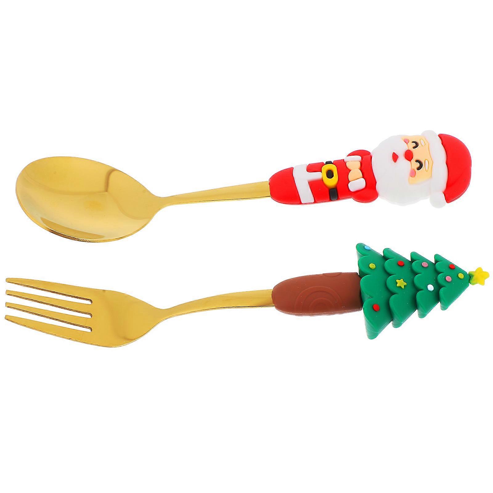 Christmas Coffee Spoon and Fork Set for Holiday Use 4Sets with PVC Handles