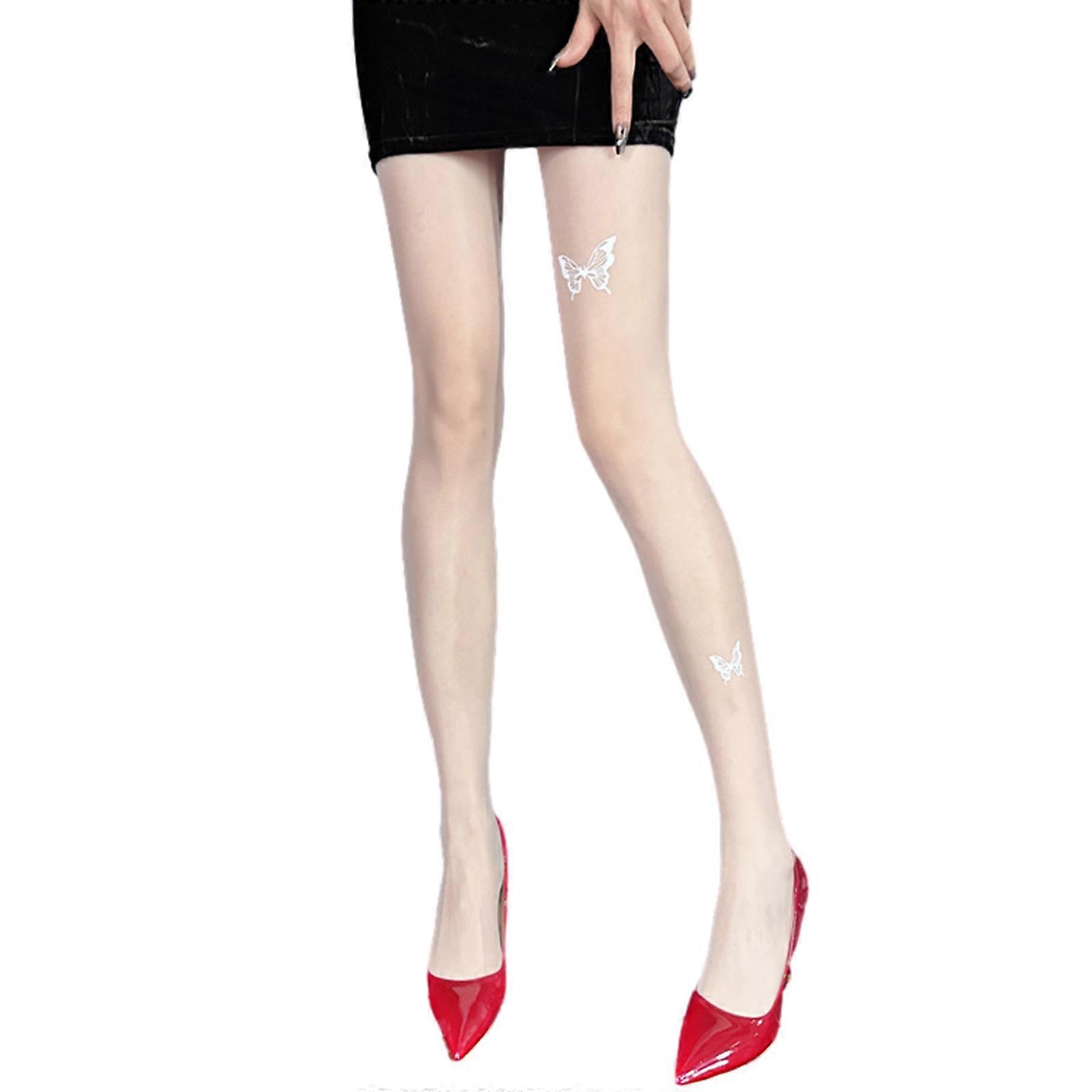 Women's Pantyhose,Butterfly Print High Waist Pantyhose Sheer Tights Thigh High Stockings White