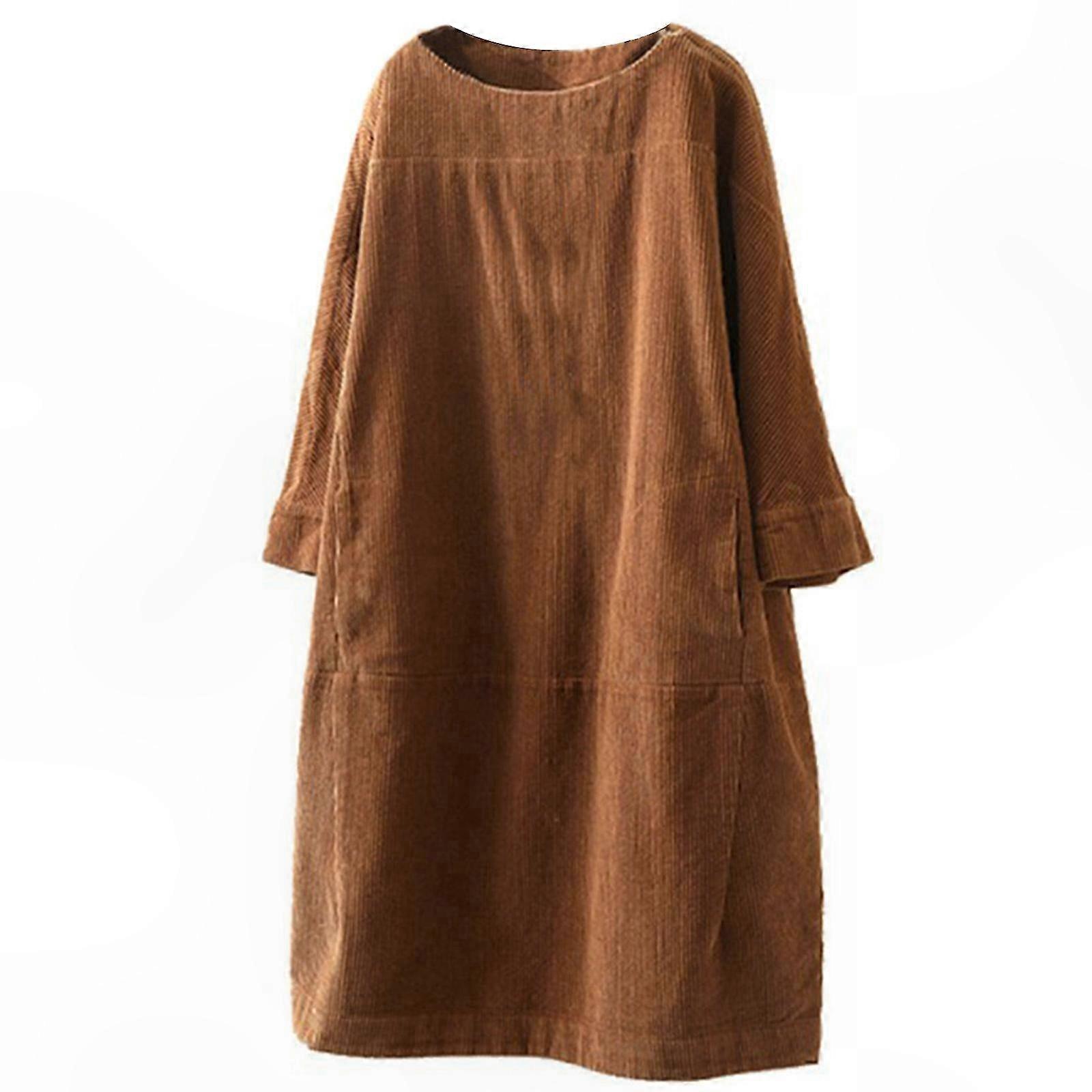 Women's Fashion Retro Corduroy Long Sleeve Casual Shirt Dress with Round Neck