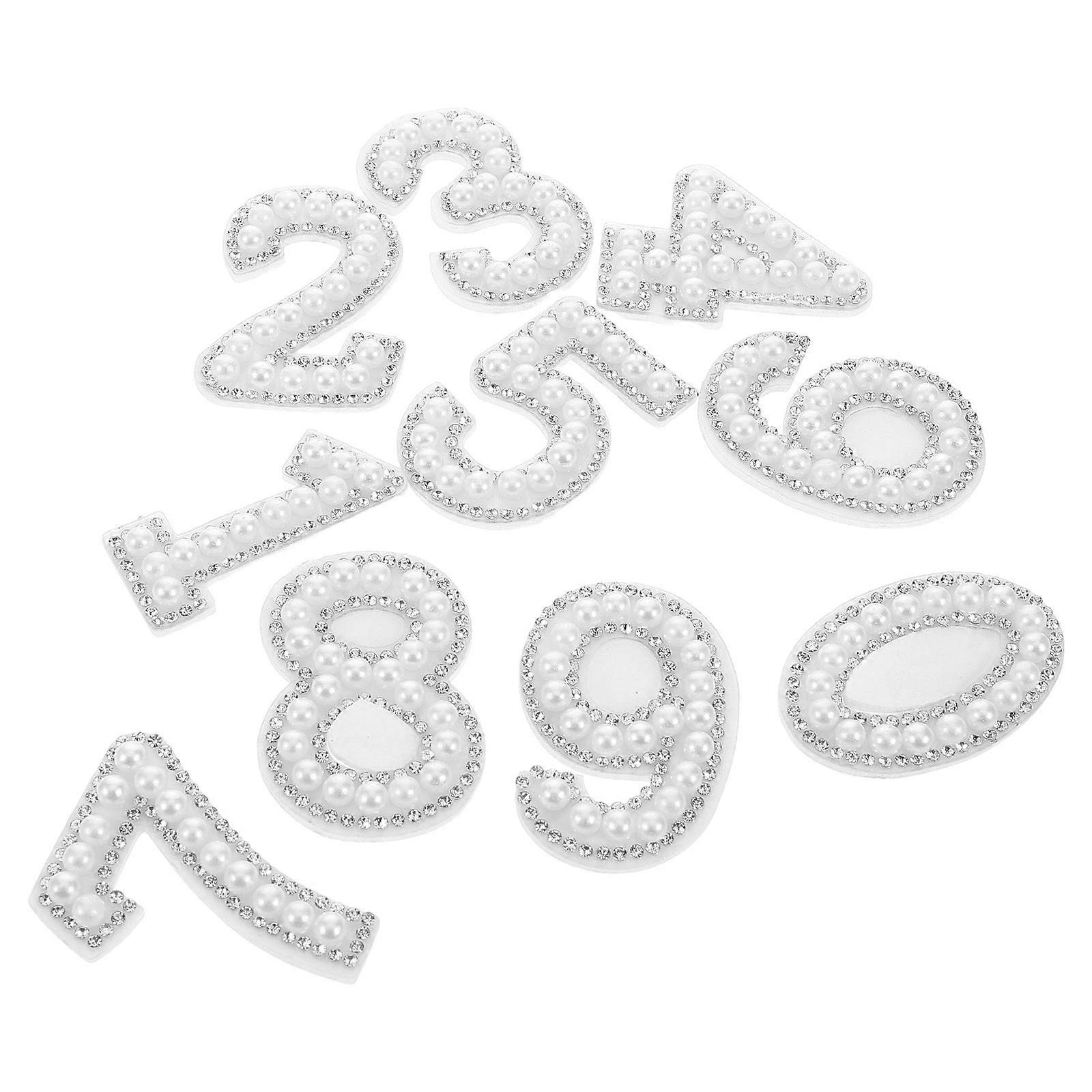 Digital Imitation Pearl Number Patches for Crafts 10Pcs Sew on Applique Set