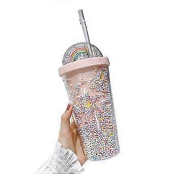 Double Layers Rainbow Wasserflasche mit Strohhalm - 550ml Creative Becher