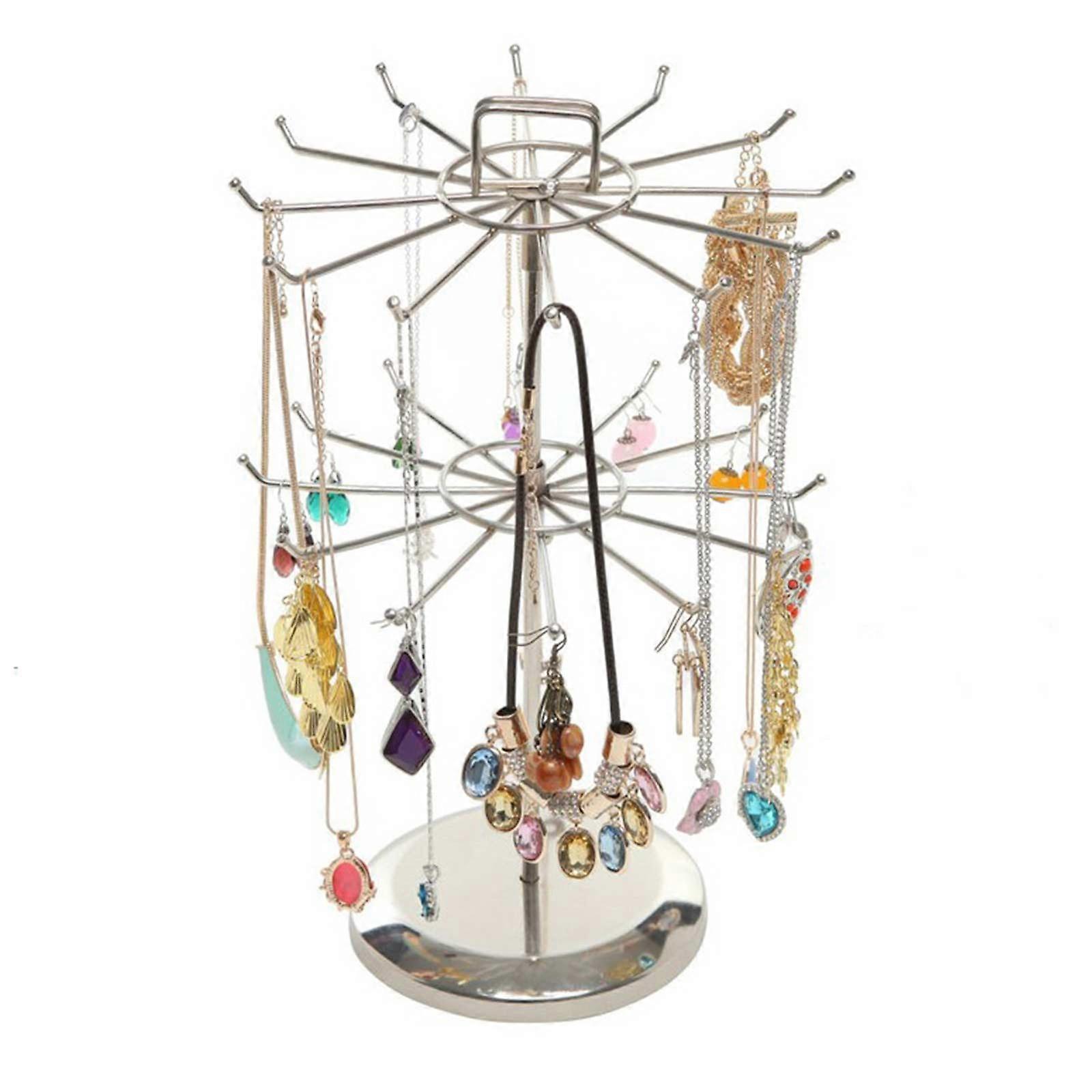 Rotatable 24 Hooks Frame Jewelry Display Stand Double-layer Home Storage