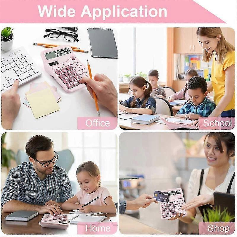 Dual Power Basic Desk Calculator (Pink)