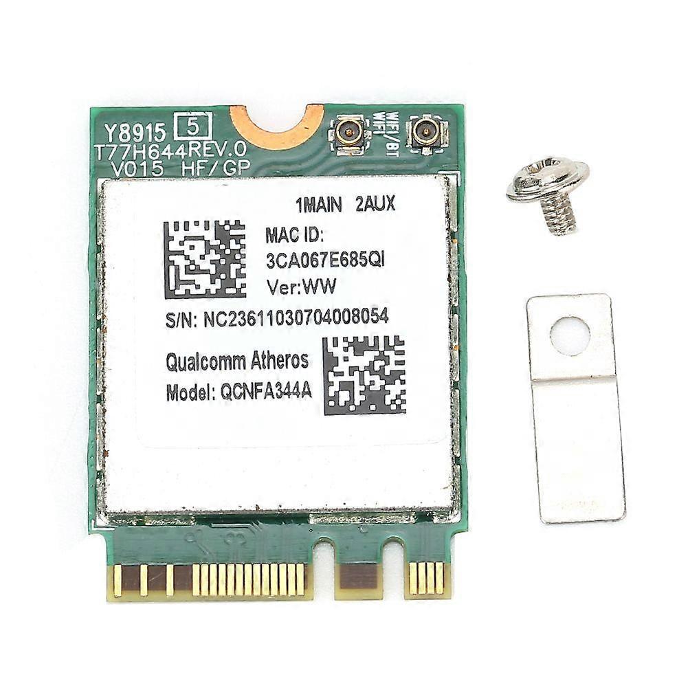 Item Type: Dual?Band Wireless Network Card Chip: For qualcomm QCNFA344A WIFI: 802.11AC 5G: 867Mbps, 2.4G: 300Mbps System: for WIN7/ WIN8/ WIN8.1 /WIN10 systems Interface: NGFF M2 interface1Support for 802.11AC protocol, up to 1200Mbps. Very fast internet speed, easy to use, with features that other network cards don't have. With this wireless module, you can enjoy movies, large file transfer, and smart home devices without dropped connections. 2This product supports multiple for Windows systems, practical and efficient Support for WIN7/ WIN8/ WIN8.1 /WIN10 systems. Doubles the transmit speed for faster transmissions thereby reducing the overall power 3Notebooks such as for Dell, for Asus, for Toshiba, for Shenzhou, for Acer, for SONY, etc. with NGFF M2 WIFI slot can basically use this wireless network card. The wireless card owns really wide range of applications 4The following for Dell machine models are supported for Inspiron 13 (7359) Latitude E7470 Latitude E5470 latitude E7270 5Our technology extends battery life. This card reduces power consumption for notebooks by negotiating when and how often they will wake up to send or receive data, increasing sleep time and substantially prolonging battery life.This product is not compatible with for Lenovo and for HP notebooks1 xNetwork Card1 xScrew1 xExtension Board