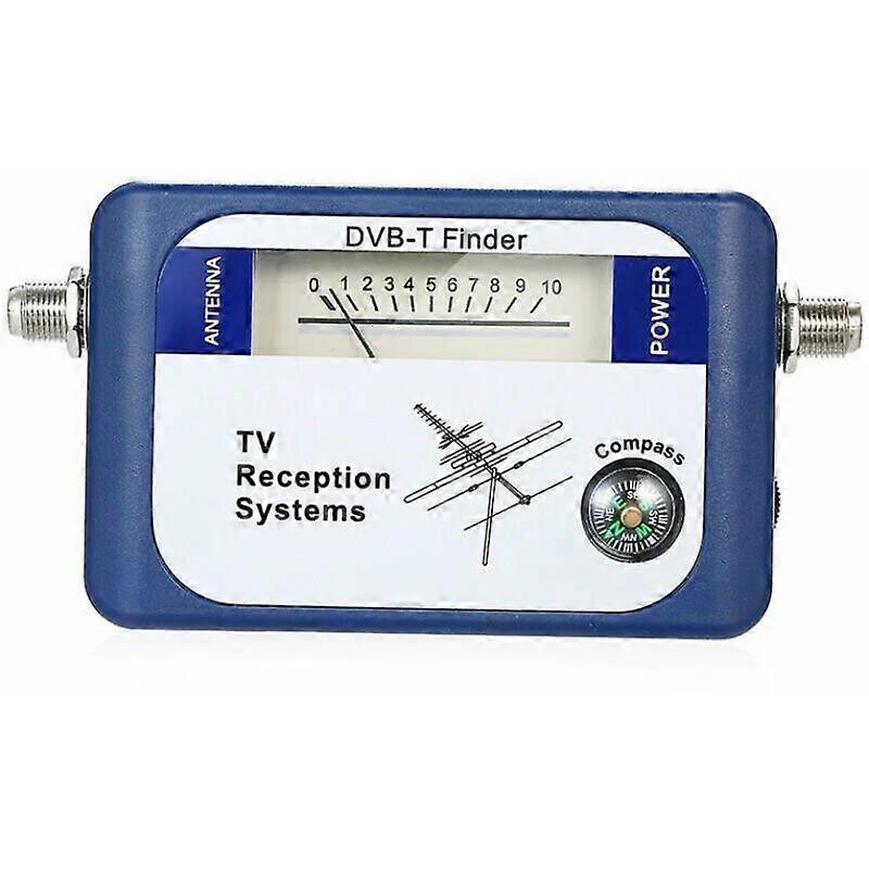 Features: Presented as having excellent sensitivity and precision, they help you find the best position for DVB-T antenna installation. Equipped with a compass for easier and faster adjustment. With ringtone control and attenuation function, simple and user-friendly operation. The numbers in the feedback indicate the signal strength intuitively. Mini size and light weight, truly portable and easy to carry. Operation: 1. Connect the antenna cable on the left to the F-female and the battery pack cable on the right to the F-female. Remove any external amplifiers * that may be connected to the antenna. 2. Adjust the antenna to the best position by looking at the indicator reading. Higher on the scale gives a better signal. If the finder's reading is full scale, adjust the level control knob to reduce the reading to around 5 (turn the knob clockwise to reduce the reading), continue to move the antenna until the highest possible reading is obtained. 3. Remove the finder and replace any disconnected amplifiers. Important note: - If your antenna has an internal amplifier (e.g.: 01MM-SQ01) it must be powered by an external power source via a DC insertion module. Make sure the electrical insert is placed between the finder and the antenna. Features: Color blue Material: plastic Frequency range: 170-860MHz Input level range: 65-95dBuv Impedance: 75Ω Insertion loss: ≤5.0dB Power supply: 9-12V DC Item size: Approx. 127 * 63 * 35mm / 5 * 2.48 * 1.38in Item weight: Approx. 90g / 3.2oz Package size: approx. 18.6 * 14.1 * 4.3cm / 7.32 * 5.55 * 1.69inch Package weight: Approx. 197g / 6.97oz