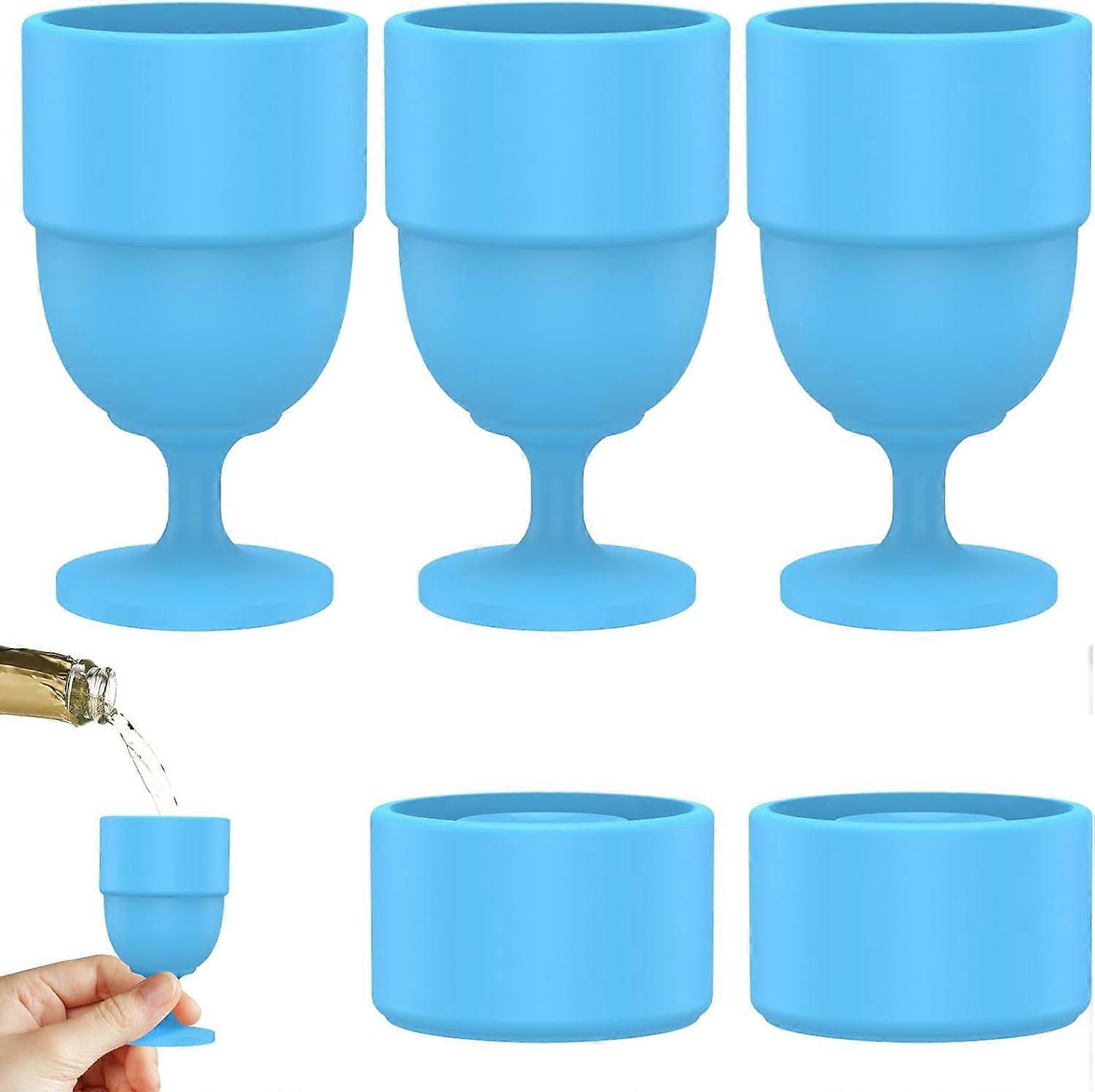 Easygo 5 Pcs Silicone Wine Glasses, Portable Collapsible Cups Compatible with Wine, Beer, Whiskey, Unbreakable for Travel Camping Picnic (Blue)