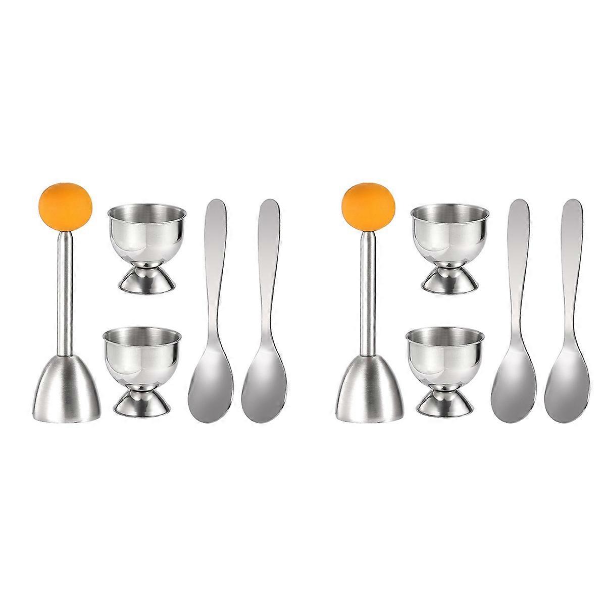 Egg Cracker Topper Set Soft Hard Boiled Eggs Separator Tool 4 Egg Cups,4 Metal Spoons&2 Soft Boiled