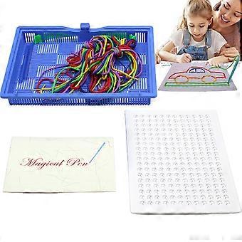 Threading board for kids, StringArt set, Portable crochet kit with colorful ropes