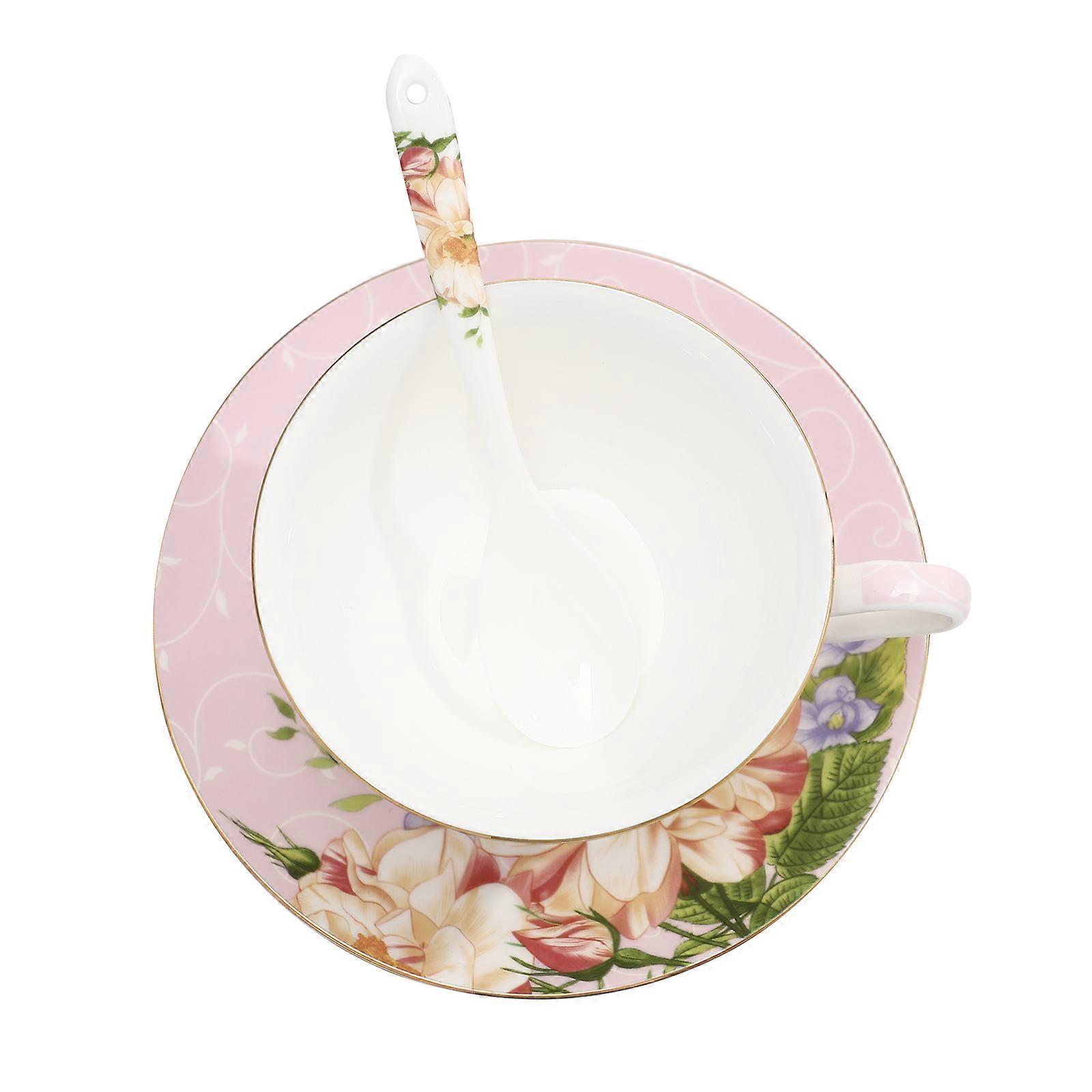 Elegant Ceramic Cup Set with Saucer and Spoon, High End Porcelain Mug with Ergonomic Handle and Flower Pattern for Home or Office Use