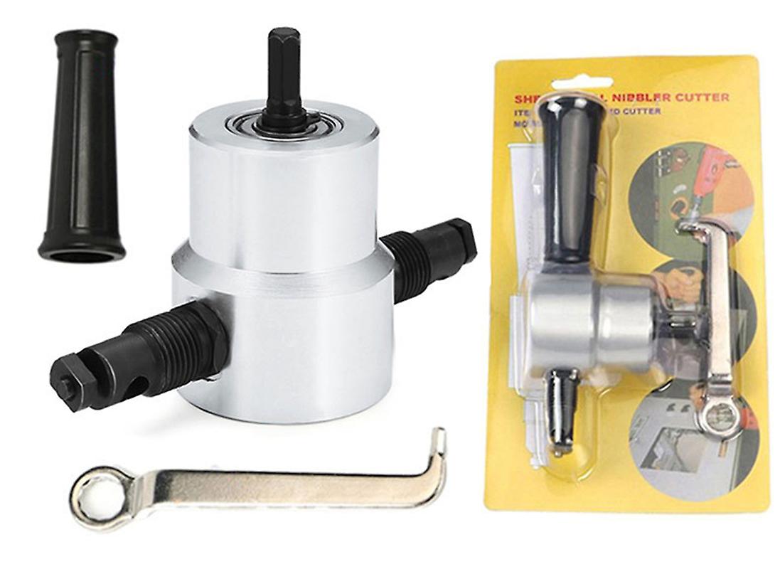 Electric Double Head Sheet Metal Cutting Nibbler Saw Cutter Holder Tool Power Drill Attachment Kit