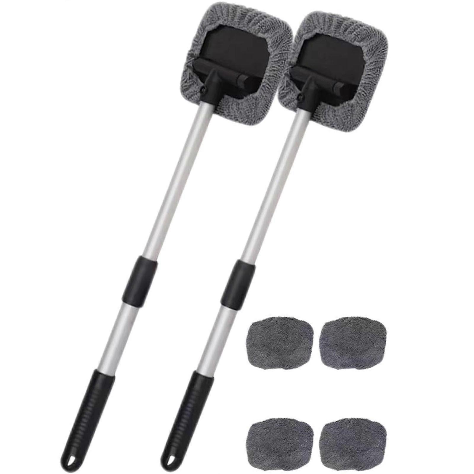 Fankiway 2Pcs Windshield Cleaner with 4 Microfiber Pads & Extendable Handle, Reusable Auto Glass Wiper Tool Compatible with Car Windows