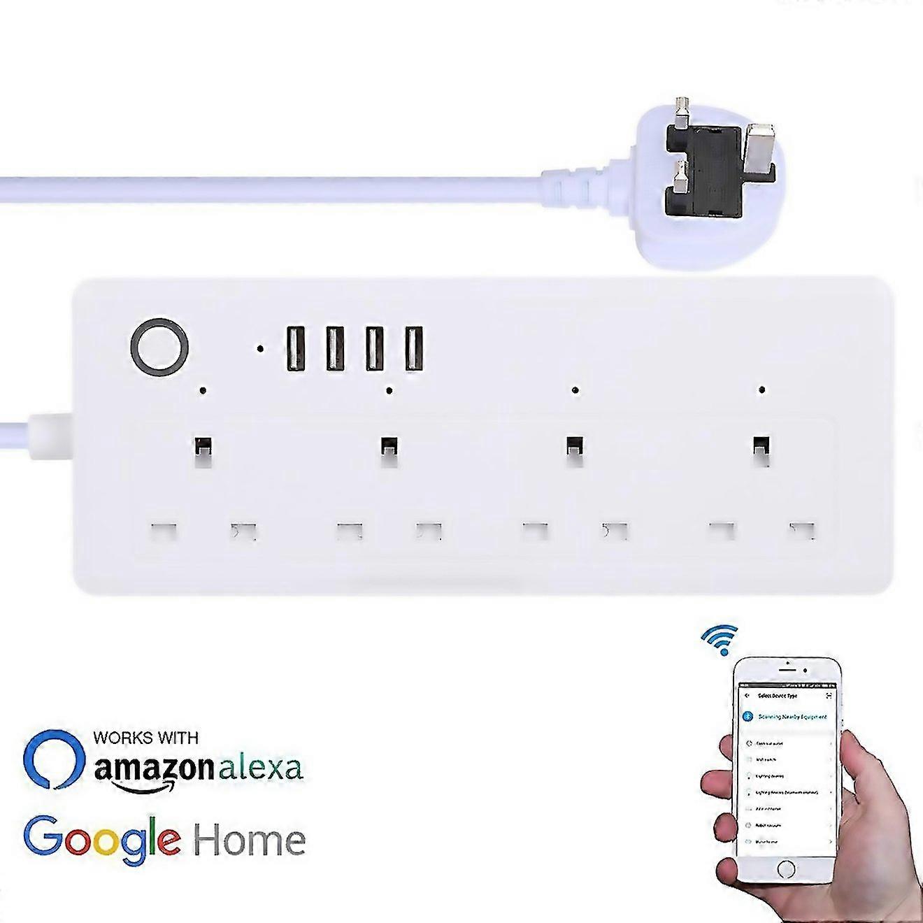 For 4 X Usb Ports 4 X Plug Jack 13a Max Output Wifi Remote Control Smart Power Socket Works With Ale