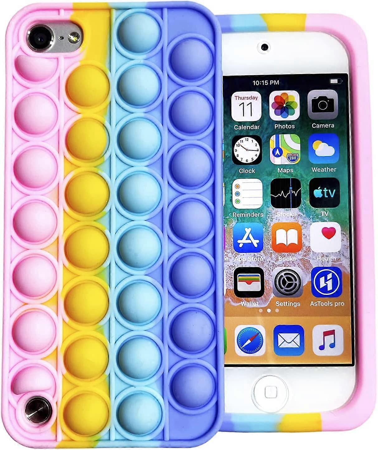 For iPod touch 7 case Compatible with Apple iPod Touch 7/6/5, compatible with Apple iPod Touch 7th/6th/5th Generation(4.0"). Durable Silicone This Pop case for iPod touch 6 is made of high quality soft silicone material, tear-resistant, light and thin, which makes you comfortable touch feel. Excellent Shockproof Protection With unique design, the case cover for iPod touch 5 is made of superior silicone material, shock and scratch resistant in use, protecting your device against drops and bumps. y Push Pop Bubble Toys Design Super cute elements and beautiful colors very cool fashion. The phone case for iPod touch is a magic tool to relieve pressure, no matter in work or life pressure, it can help you release pressure, it is good-looking and interesting. Best Choice Perfect Gift choice for daughters, sons, family and friends on Children's Day, Christmas, birthday, Thanksgiving and various festivals.