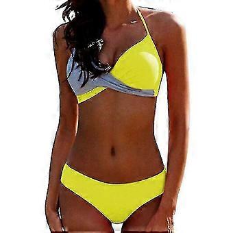Frauen Color Block Bikini Set Gepolsterte Push Up Bademode Badeanzug Neckholder Ausschnitt Badeanzug