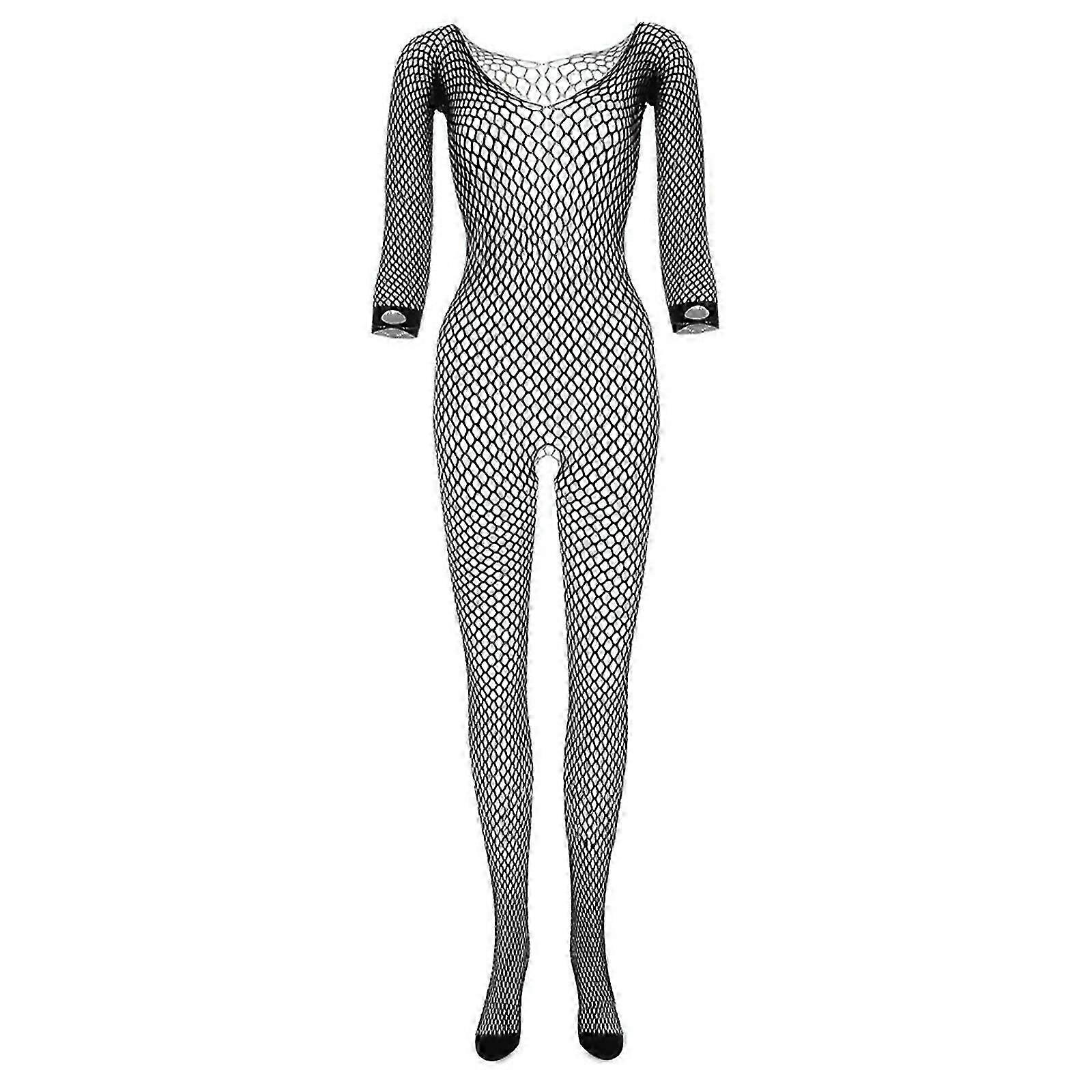 Women Sheer Fishnet Bodystockings Lingerie Perspective Pantyhose Babydoll Bodysuit Lingerie Sheer Fishnet Body Stocking White