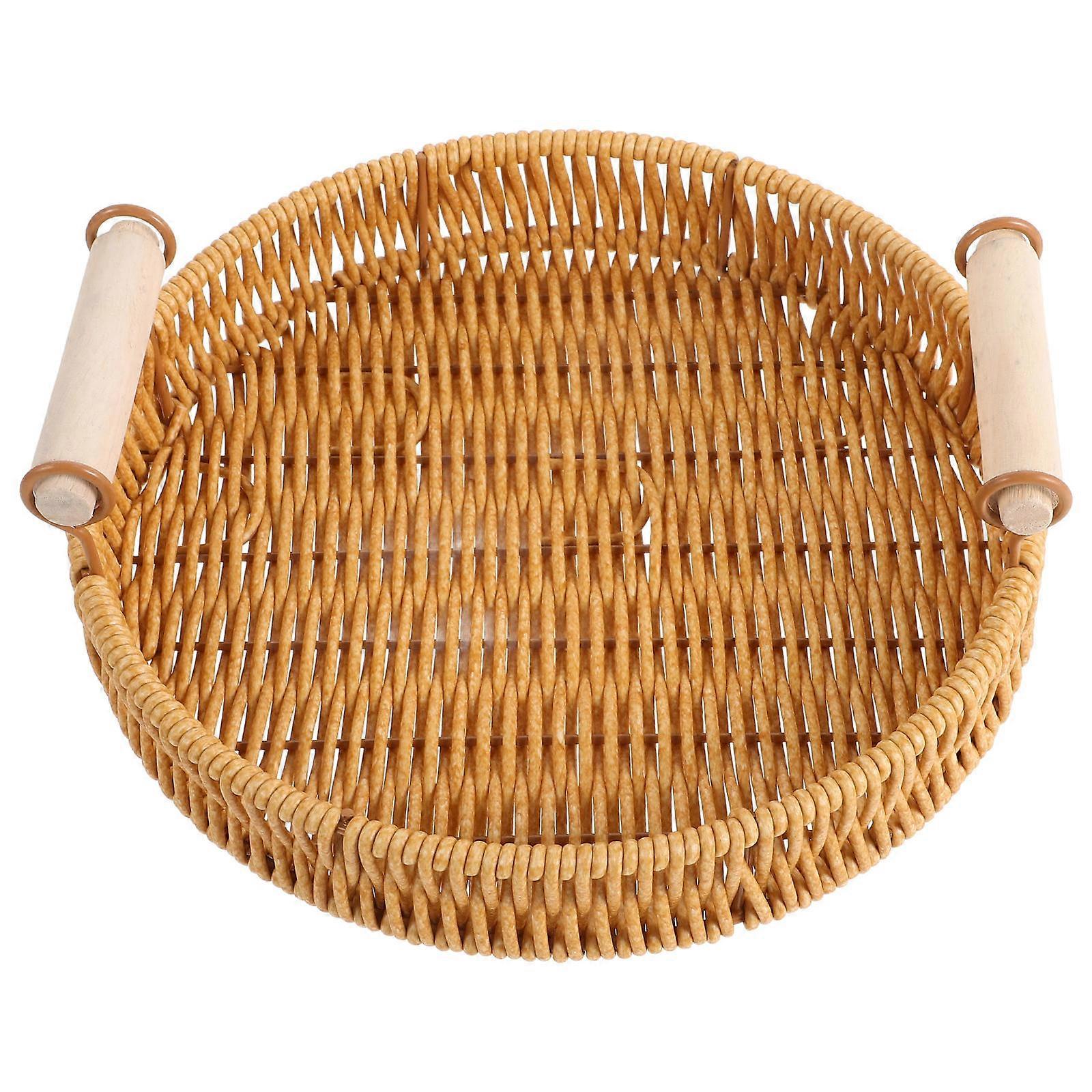 Fruit Bowl Rattan Tray for Storage 5Pcs Handmade Wicker Round Serving Trays