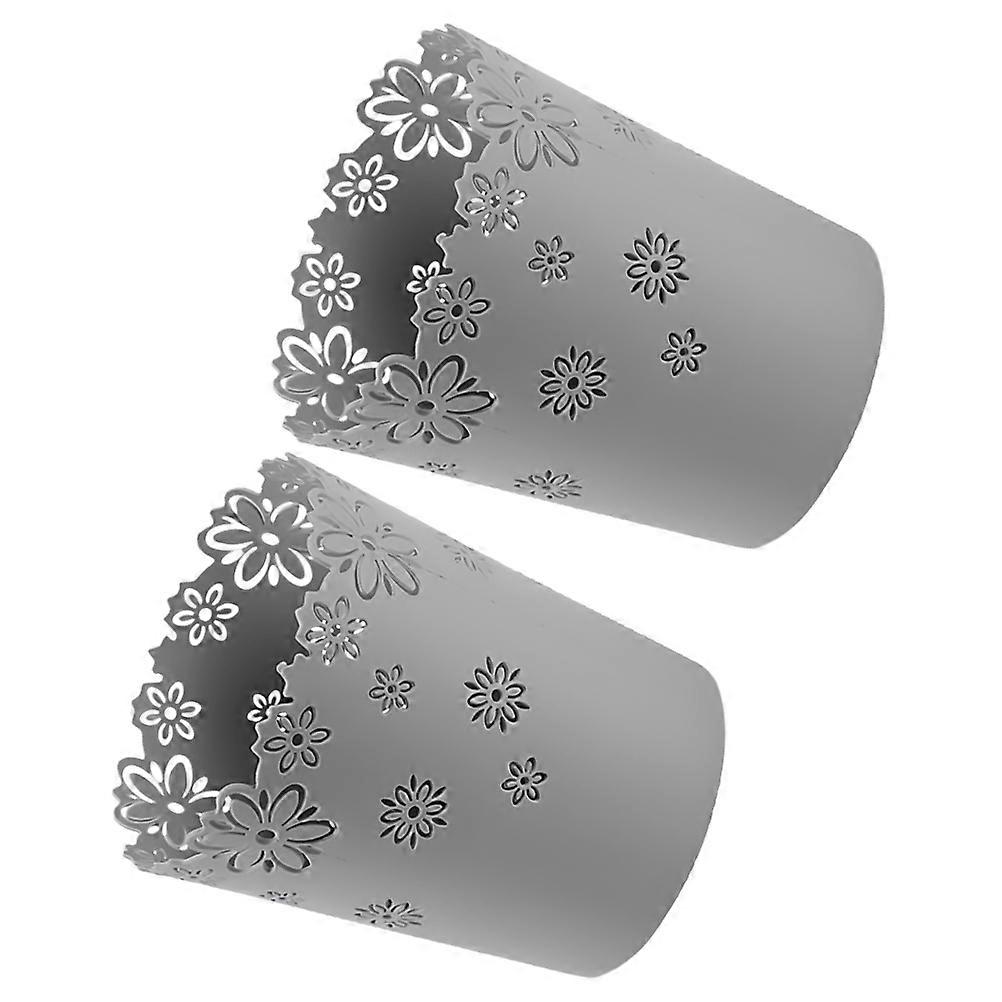 Desktop Trash Can Wastebasket: 2pcs Garbage Bin Pen Holder Flowerpot Utility Pail Small Buckets Organizer Kitchen Countertop Trash Containers Features - Color: Grey - Material: - Size: 13. 00X10. 00X9. 00cm, 5. 11X3. 93X3. 54in Package list: 4 x trash cans