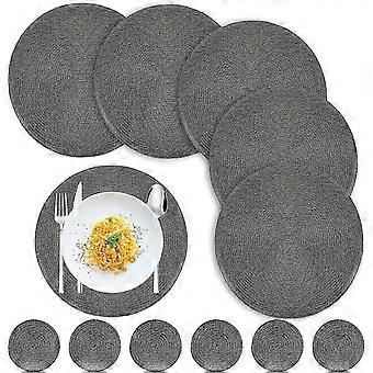 Geflochtene geflochtene runde Tischsets und Untersetzer in Grau - 12 Tischsets, 6 Untersetzer