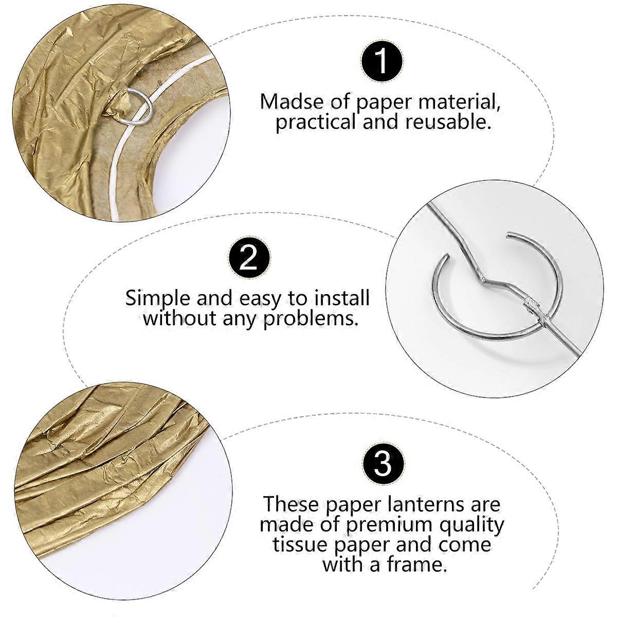 Golden Paper Lanterns Decorative Lantern Set for Hanging 1Set