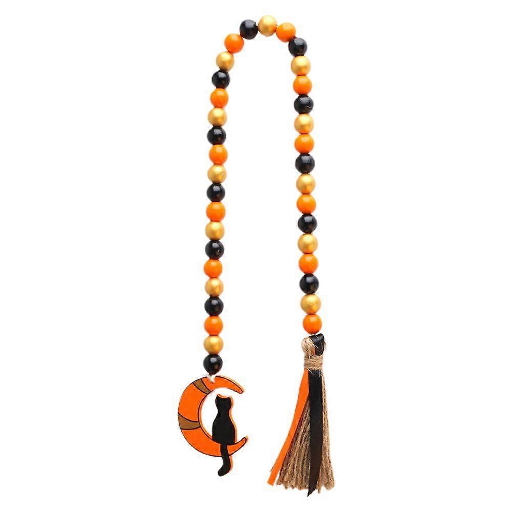 Halloween Wood Beads String Decor Beads String Ornament Beads String with Tassel