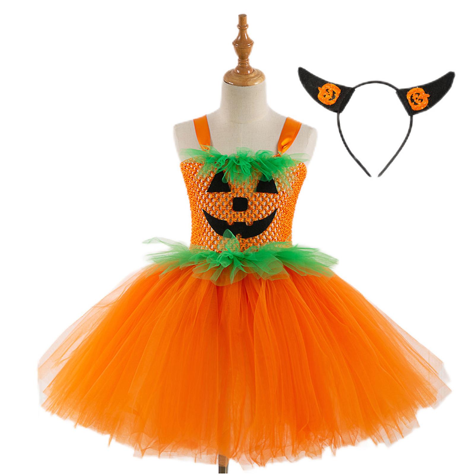 Halloween Children's Clothing Pumpkin Head Funny Mesh Girl Skirt To Send Head Jewelry Festive Performance Dress Skirt.