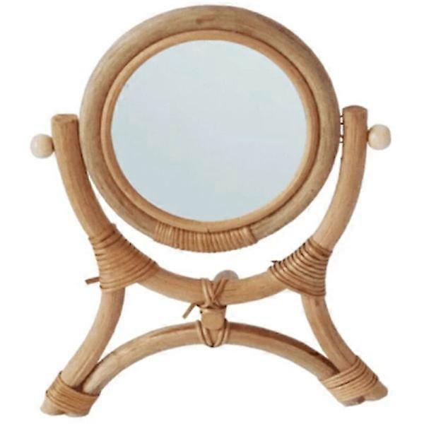 Handmade Table Makeup Organizer with Handmade Vertical Flip Desk Natural Rattan Stand Holder Round