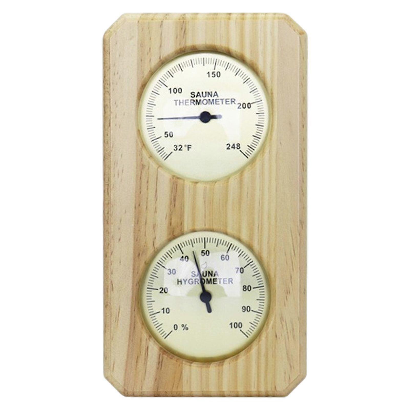 Dual-Zone Clarity: Enhance your sauna experience with our sauna hygrometer's dual-zone clarity. Featuring clear markings and scratch-resistant glass lenses, effortlessly monitor temperature and humidity for precise readings at a glance. Heat-Resistant Red Cedar Design: Crafted from sustainable red cedar wood, our sauna hygrometer boasts a heat-resistant design capable of withstanding temperatures up to 250 degree Fahrenheit. Enjoy the natural durability and subtle calming aroma of cedar wood in your sauna environment. Two-in-One Functionality: Experience the convenience of a two-in-one sauna thermometer and sauna meter. Monitor both temperature and humidity simultaneously with precision and durability, ensuring optimal sauna conditions for relaxation and wellness. Instant Installation: Simplify your setup with our sauna hygrometer's instant installation feature. Utilize the pre-drilled hole on the back for easy wall mounting, requiring just one hole to hang the thermometer securely in place for immediate use. Temperature Mastery: Take control of your sauna sessions with our thermometer's temperature mastery. Monitor calorie levels accurately to tailor your sauna experience, creating an ideal atmosphere for relaxation, rejuvenation, and overall well-being. Item Name: Sauna Hygrometer Material: Wooden Temperature Range: 0-120 Degrees Celsius Temperature Accuracy: Plus or Minus 2 Degrees Celsius Humidity Range: 0%-100%RH Humidity Accuracy: Plus or Minus 5%RH Features: Sauna Accessories, Accurate, Heavy Duty Size Details: L: 25.5cm/10.04", W: 13.5cm/5.31" (Approx.) Notes: Due to the light and screen setting difference, the item's color may be slightly different from the pictures. Please allow slight dimension difference due to different manual measurement. Package Includes: 1 x Sauna Hygrometer