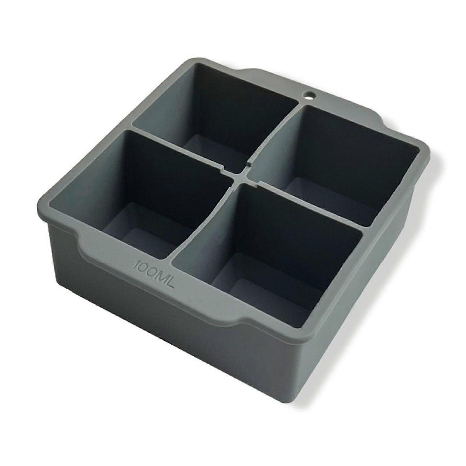 Hoarboeg 4-cell Ice Tray With Lid Summer Ice Mould Ice Box Ice Tray Ice Cube Molds Container Set for Whiskey Cocktail Iced Drinks (Gray)