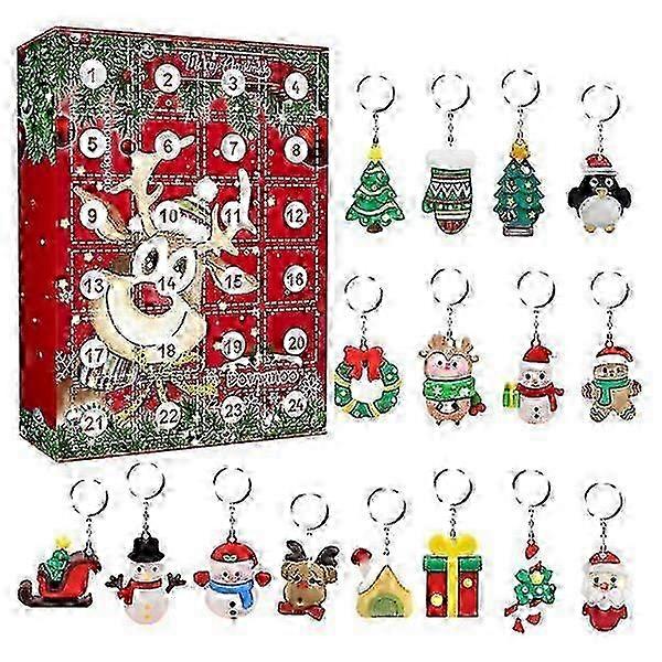 Christmas Advent Calendar Gift Box with 24 Christmas Pendants Bullet Points:1Christmas Countdown The number in the Christmas advent calendar counts from 1 to 24 until Christmas, making your family open a grid every day in the 24 days before Christmas and find gifts in each grid. It is a very creative Christmas countdown ceremony. 2Have funOur 2022 advent calendar is a fun way, the closed packaging increases children's interest and allows children to develop patience and creativity in the play. 3Create attraction This Christmas keychain calendar contains 24 grids with key chains (may contain the same or key chain not shown in the picture), so that children can take out a Christmas-themed key chain from the grids every day, which will create a lasting attraction for children. 4High-quality material Our Advent Calendars for Kids 2022 are made of high-quality material, which is sturdy, durable and skin-friendly, so that adults and children can use it with confidence. 5good gift Christmas Countdown Calendar is a special calendar for counting the days of Advent in time for Christmas and is a good gift for adults and children. 1. great gifts for kids, friends and family to enjoy the fun of the holiday countdown.2. Advent calendars for children are made with Christmas theme design and bright colors, our small key rings are easy to add a more festive atmosphere to your Christmas. parties and home decoration.3. Countdown keychain is equipped with a ring, so easily hang them on the backpack, purse or Christmas tree, door and other places you want to decorate.Specification: Name: Christmas advent calendar box Material: Resin+Metal Style: RandomSize: About 21*16*5cm/8.27*6.30*1.97inProduct list: 1 carton (includes 24 key rings) Notes: Due to the lighting effects and shooting angles, there is a color difference in the product, please understand. Due to manual measurement, there is a tolerance in the product size .