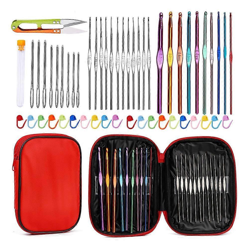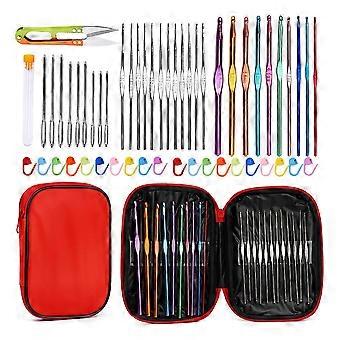 Ergonomisk & bekväm: Våra virknålar är designade med komfort i åtanke. De släta nålarna gör att garnet glider enkelt, vilket minskar trötthet i händerna under långa virkpass. Den lätta men ändå robusta designen säkerställer en trevlig virkupplevelse. Mångsidiga storlekar och typer: Detta set innehåller en mängd olika nålstorlekar och typer för att passa olika garnvikter och projektbehov. Från ömtåligt spetsarbete till tjocka filtar, du har rätt nål för varje skapelse. Komplett virkningsset: Detta omfattande set innehåller allt du behöver för att börja virka direkt. Med nålar, sax, nålar och en praktisk förvaringspåse har du allt du behöver organiserat och nära till hands.   Specifikationer: Färg: Flera färger Storlek: Längd: 14,7 cm Bredd: 0,5 cm Höjd: 0,5 cm Material: ABS+Rostfritt stål+Aluminium   Förpackningen innehåller: 9 x Nålar 1 x Sax 22 x Virknålar 20 x Maskmarkörer 1 x Förvaringspåse