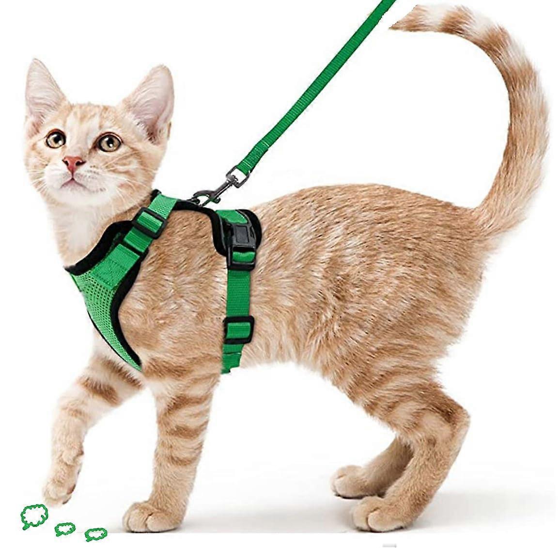 Kitten Harness, Adjustable Leak Proof Cat Harness, Reflective Vest (Bright Green, S)