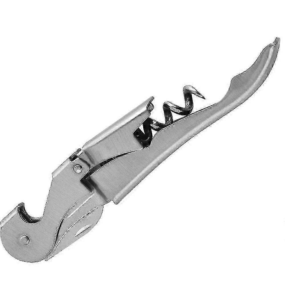 Double Hinged Waiters Corkscrew, Matte Black Wine Opener with Foil Cutter - Silver