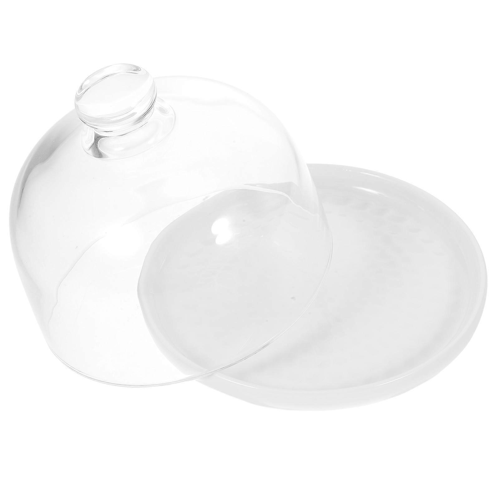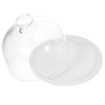 Ceramic Dessert Plate with Glass Cover for Food Display 5Sets White