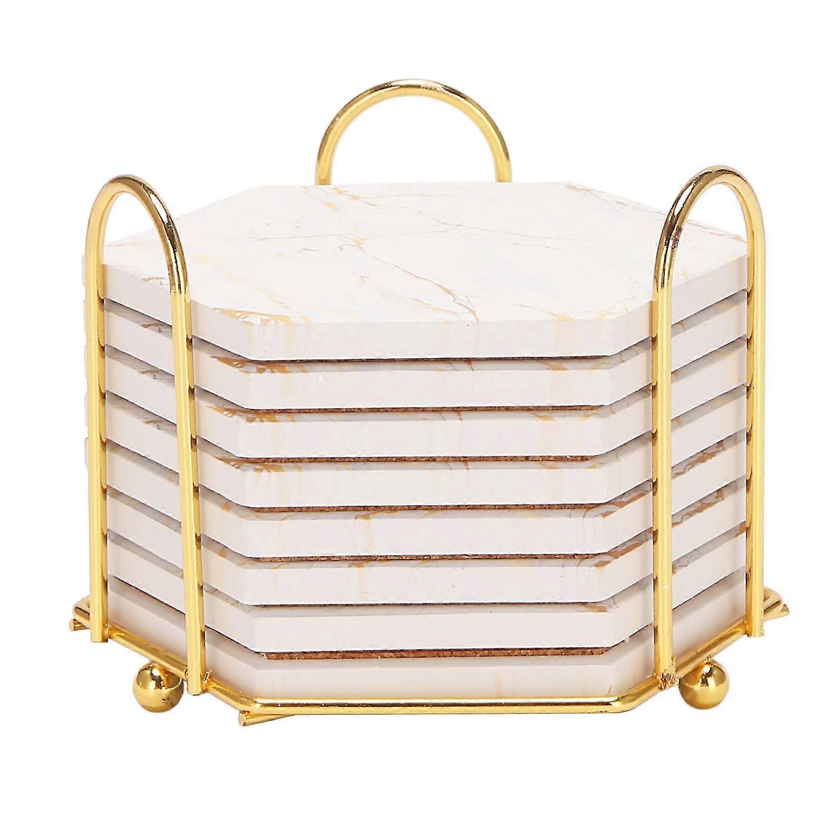 Compatible Drinks Absorbent With Holder Marble Design Ceramic Coaster Set